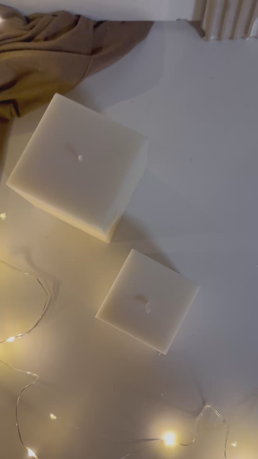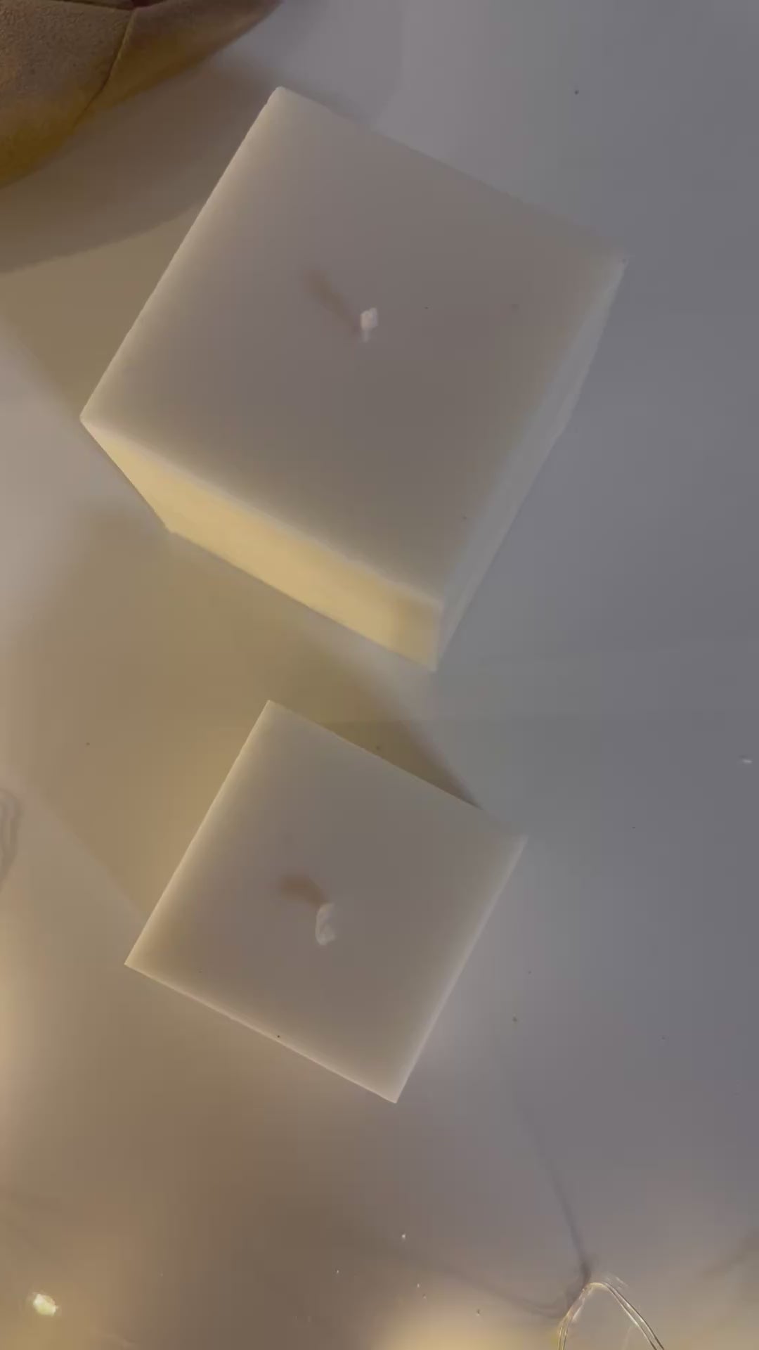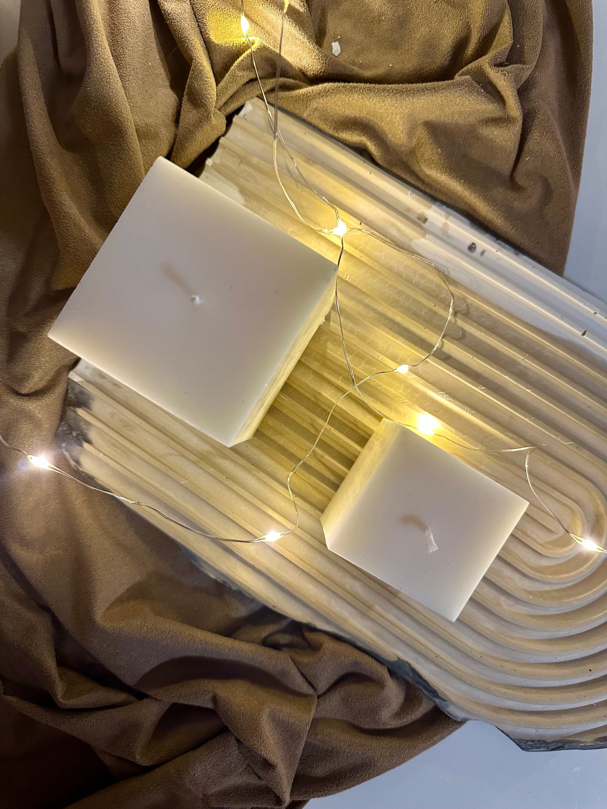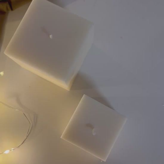 Candela a forma di cubo geometrico . Fatta e colata a mano 100 % cera di soia