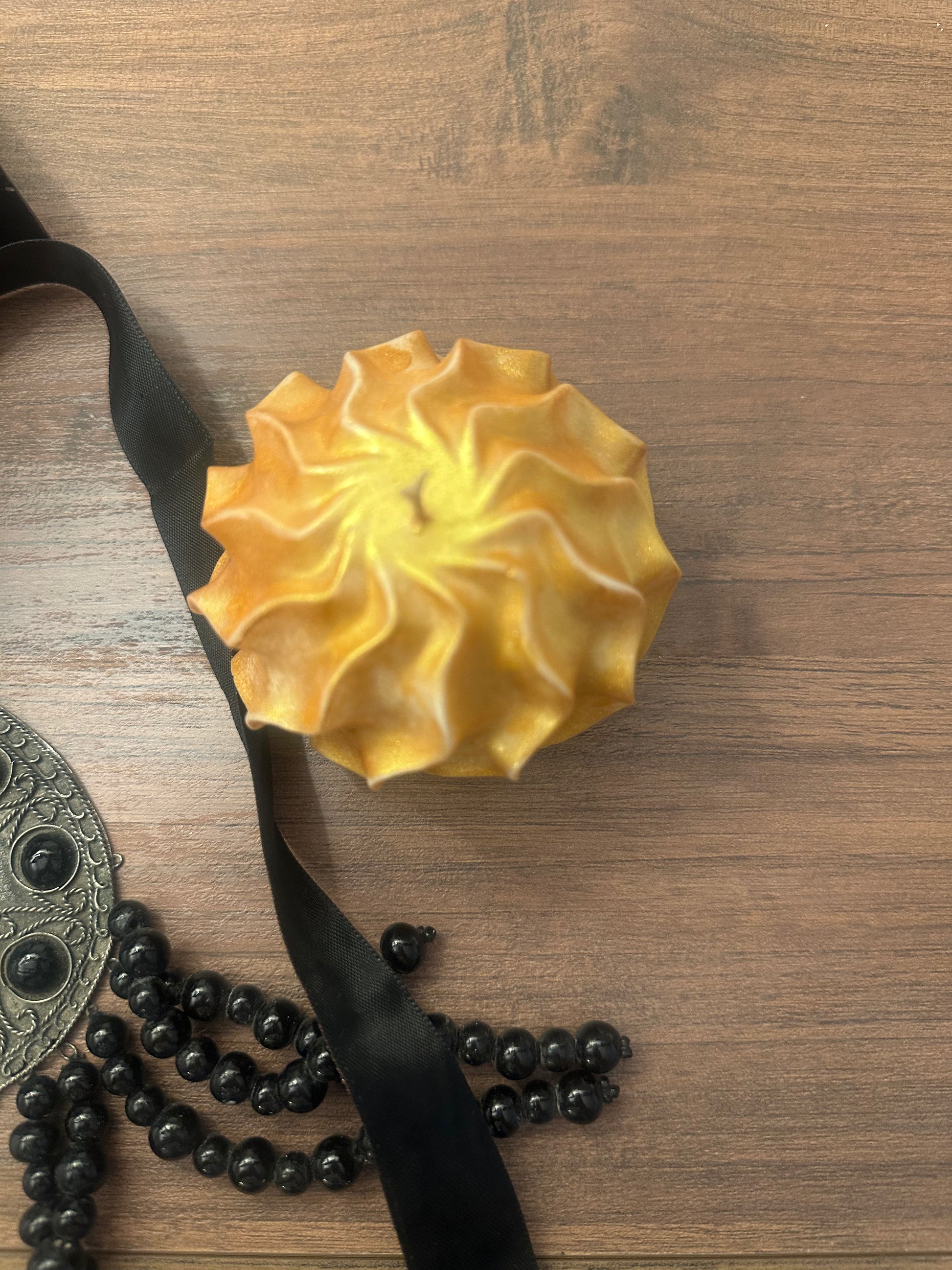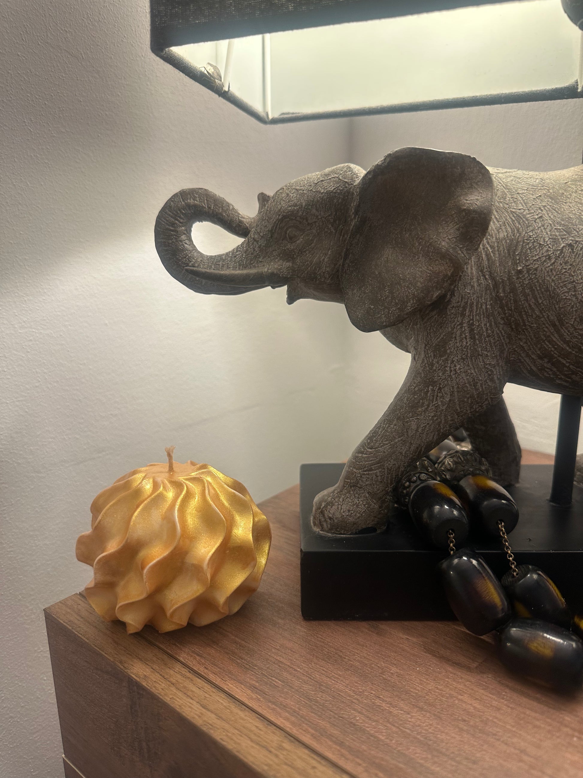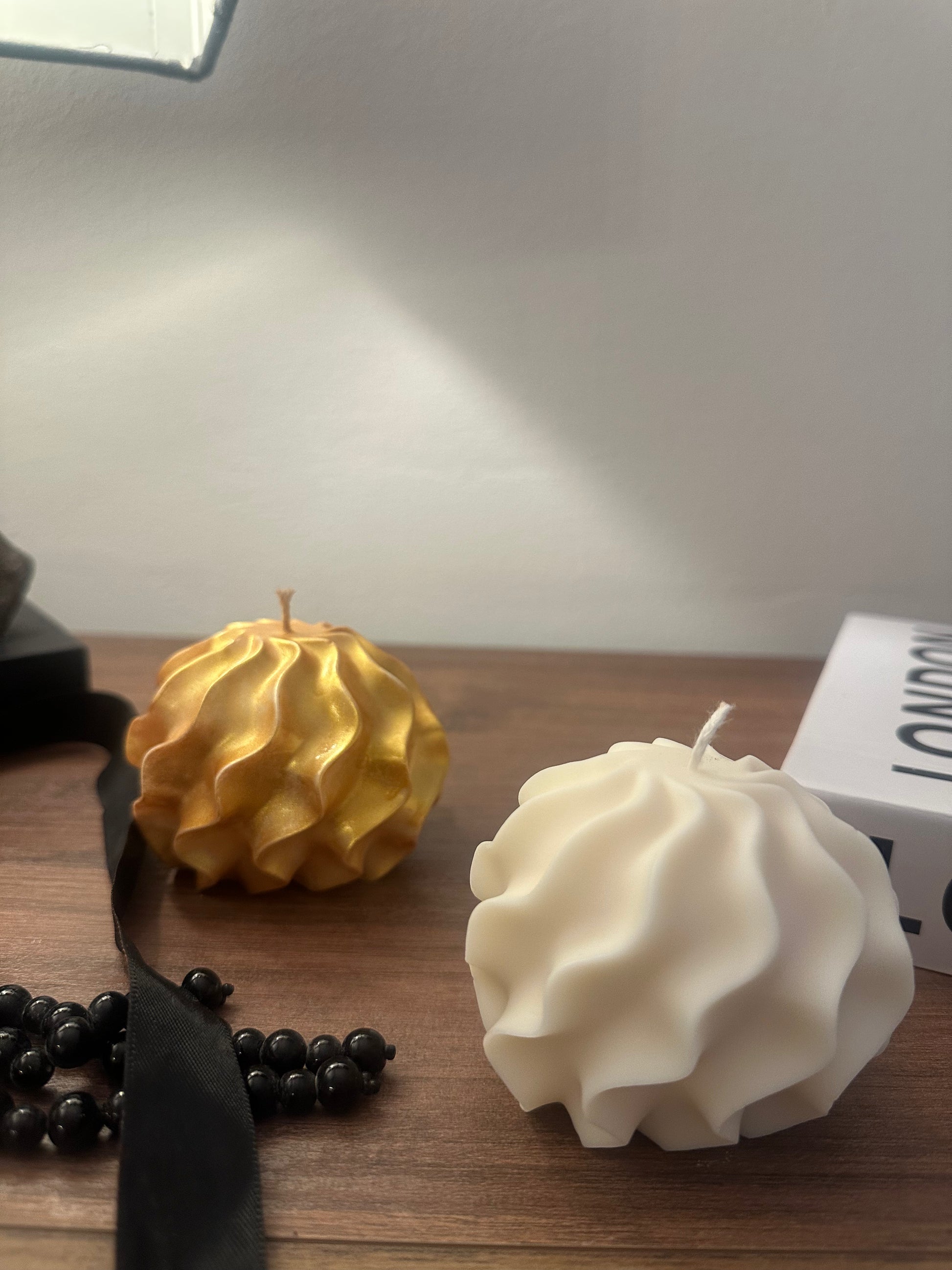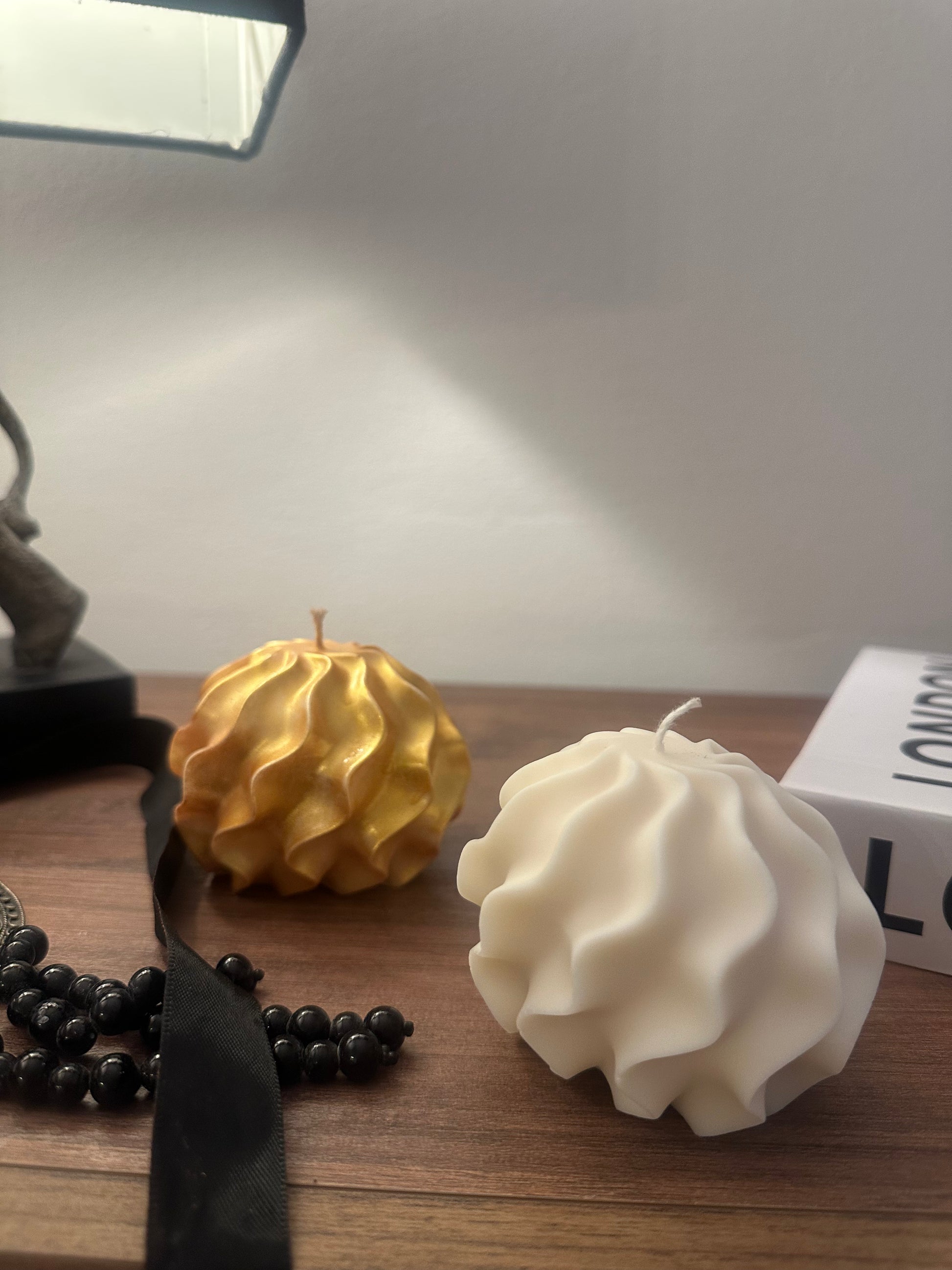 Una candela a forma della palla di Natale con i dettagli dorate con cera di soia 100% naturale