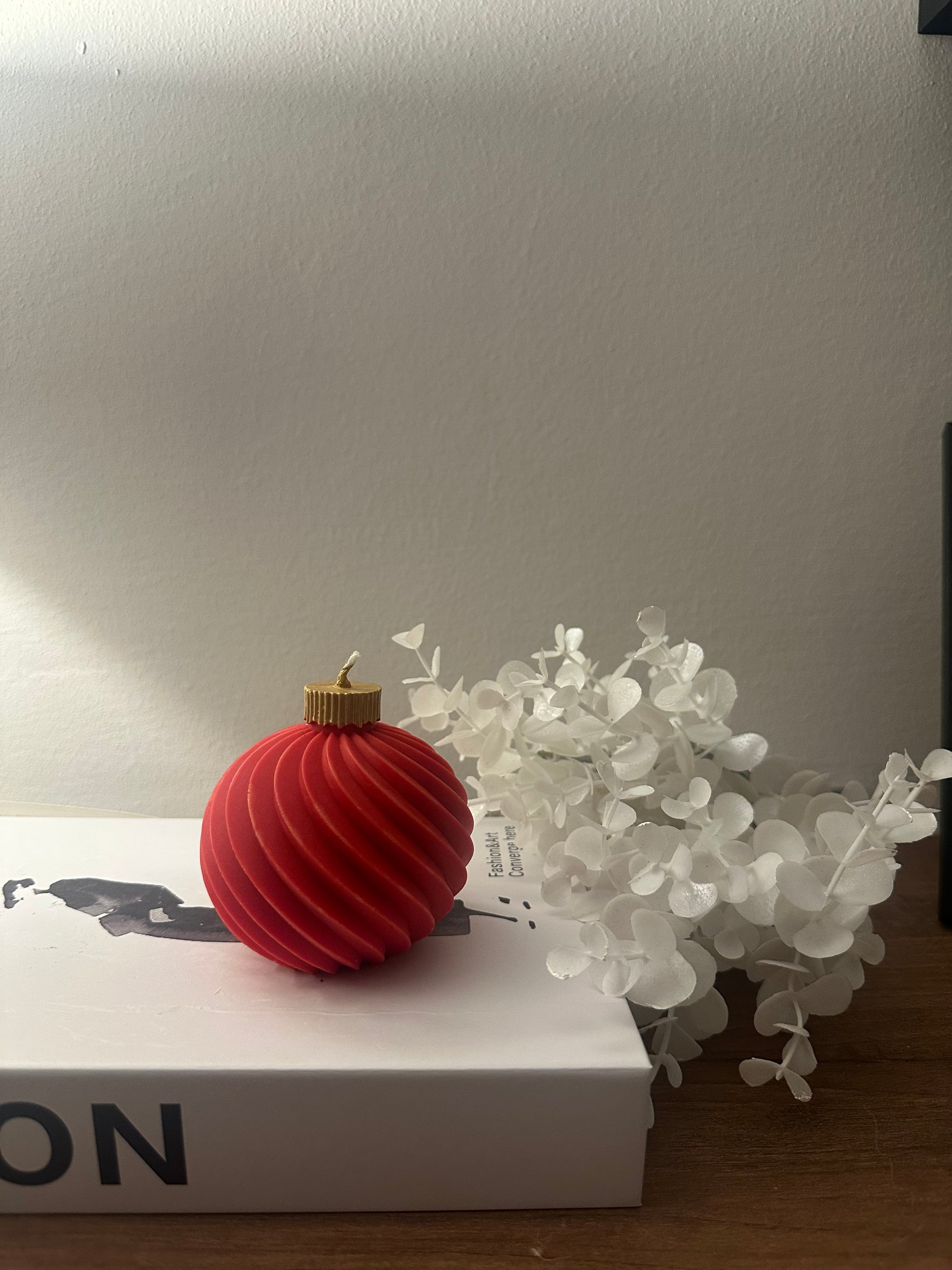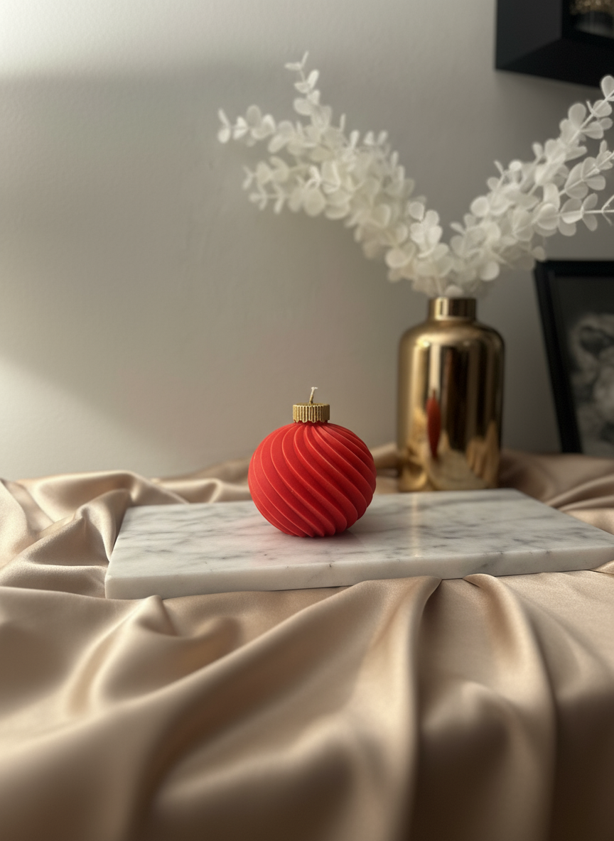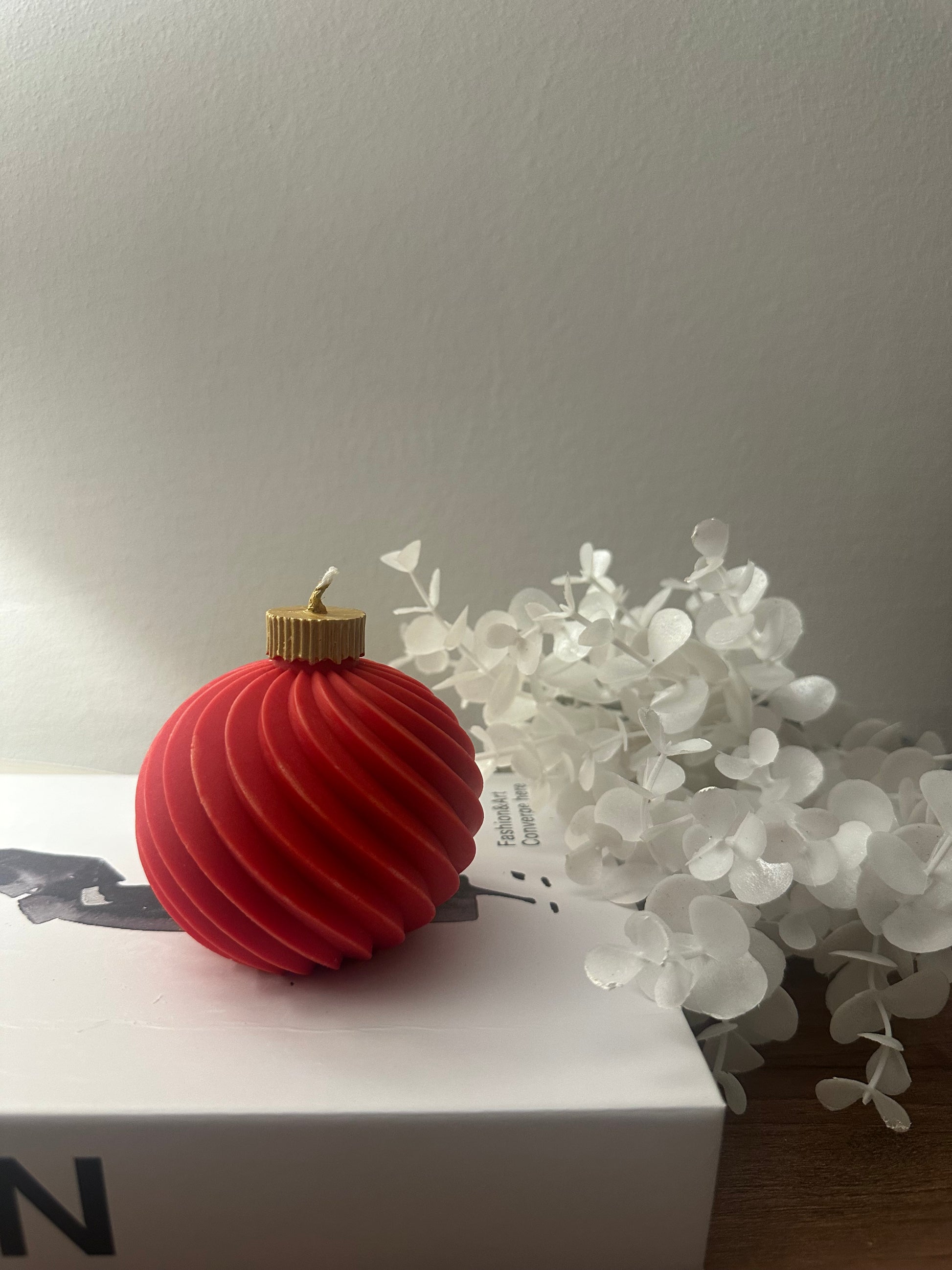 Una candela a forma di palla di Natale super natalizia per decorare la vostra casa e portare lo spirito natalizio