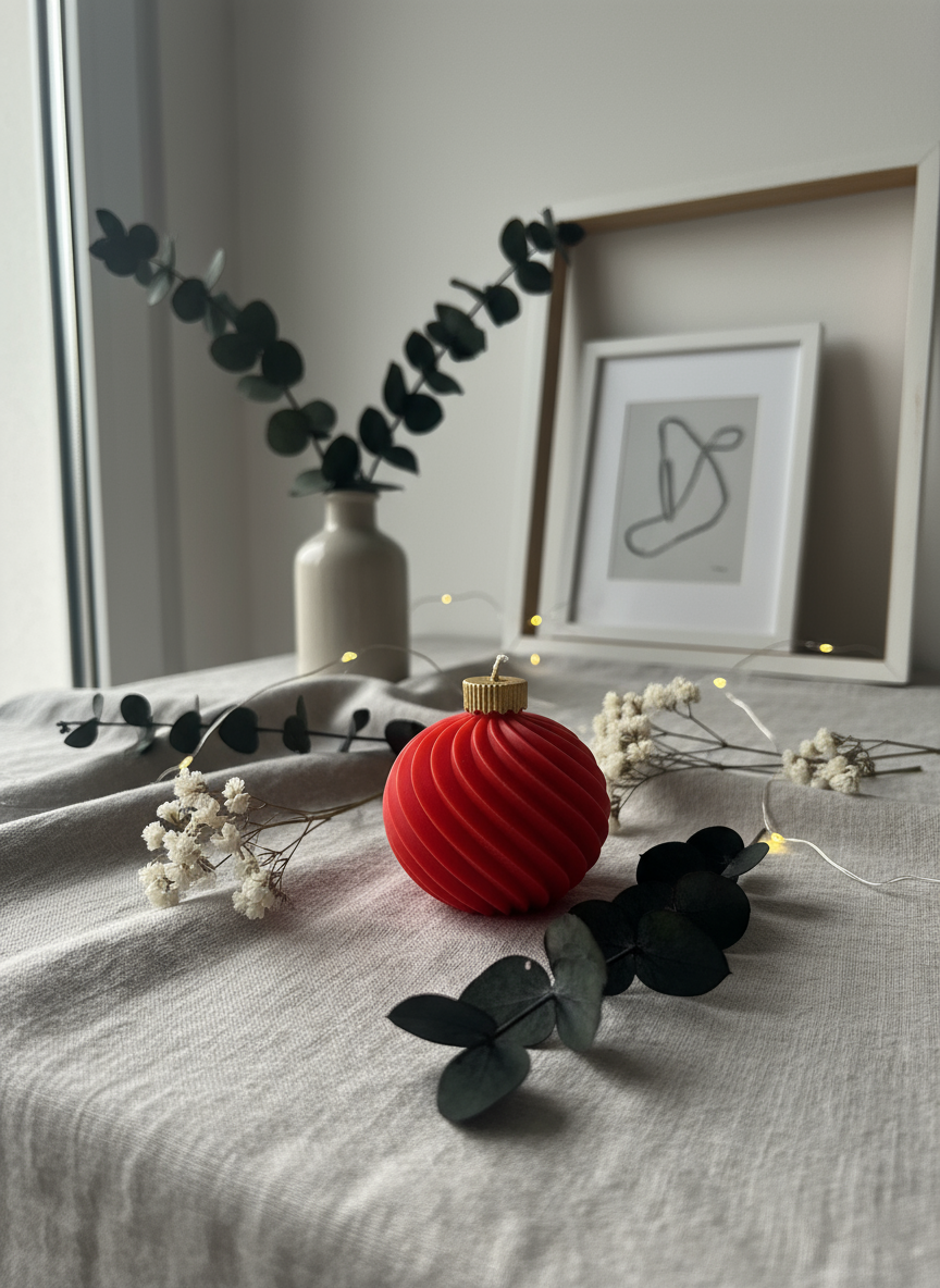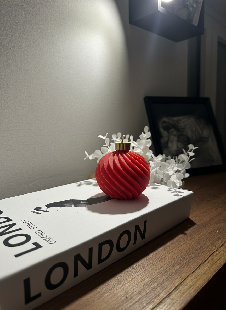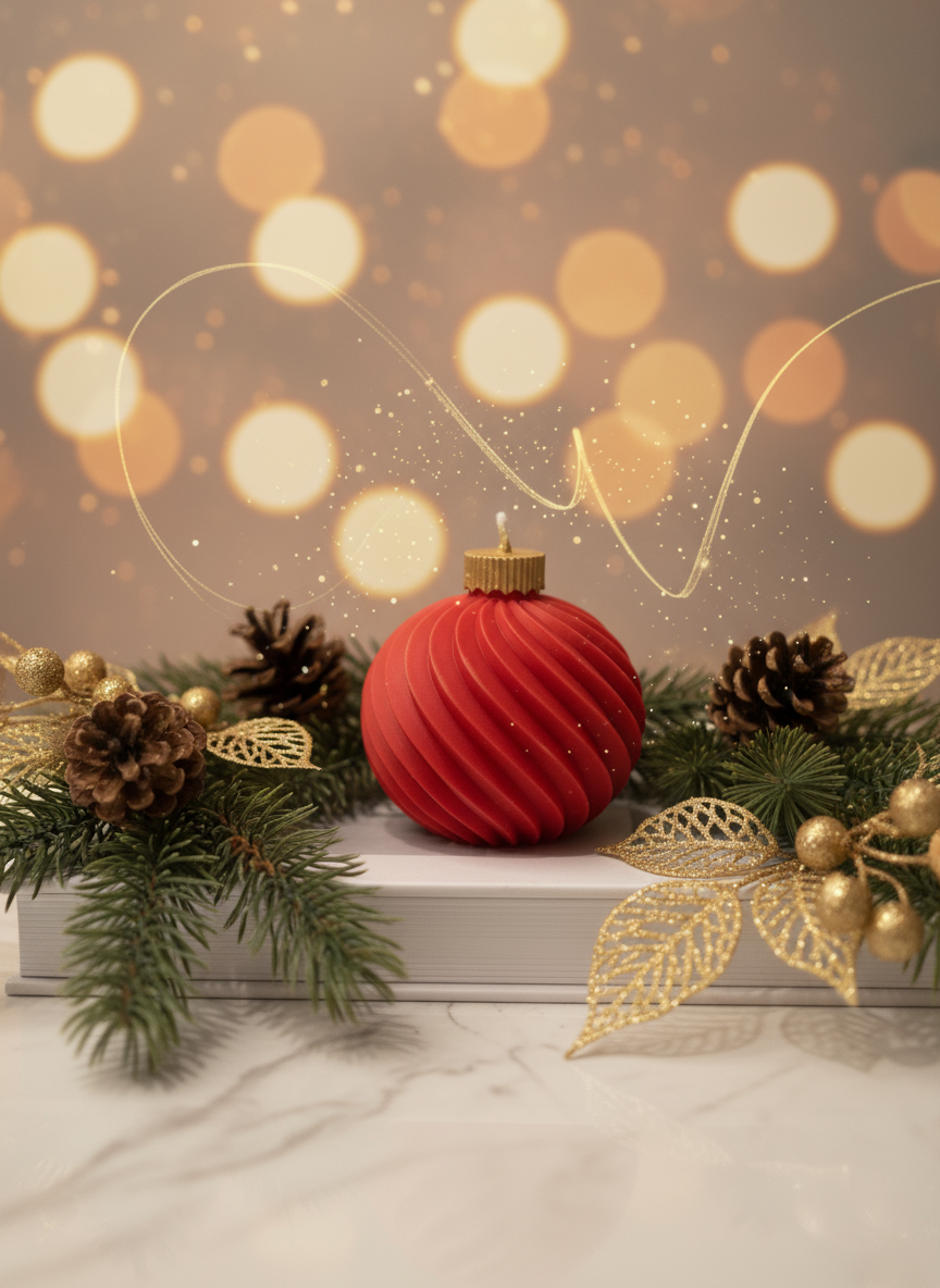 Una candela a forma di palla di Natale super natalizia per decorare la vostra casa e portare lo spirito natalizio