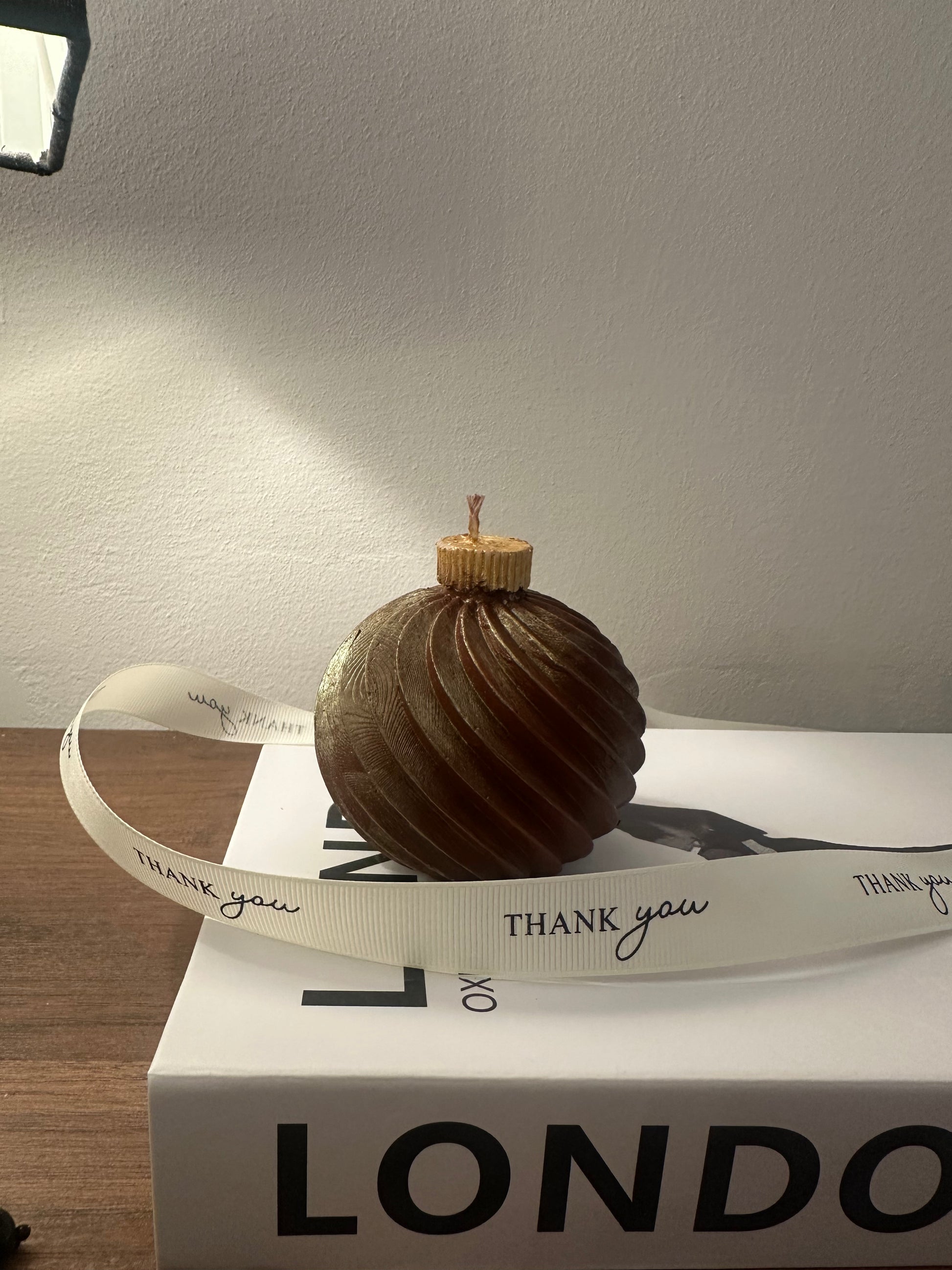 Una candela a forma di palla di Natale con cera di soia 100 % naturale