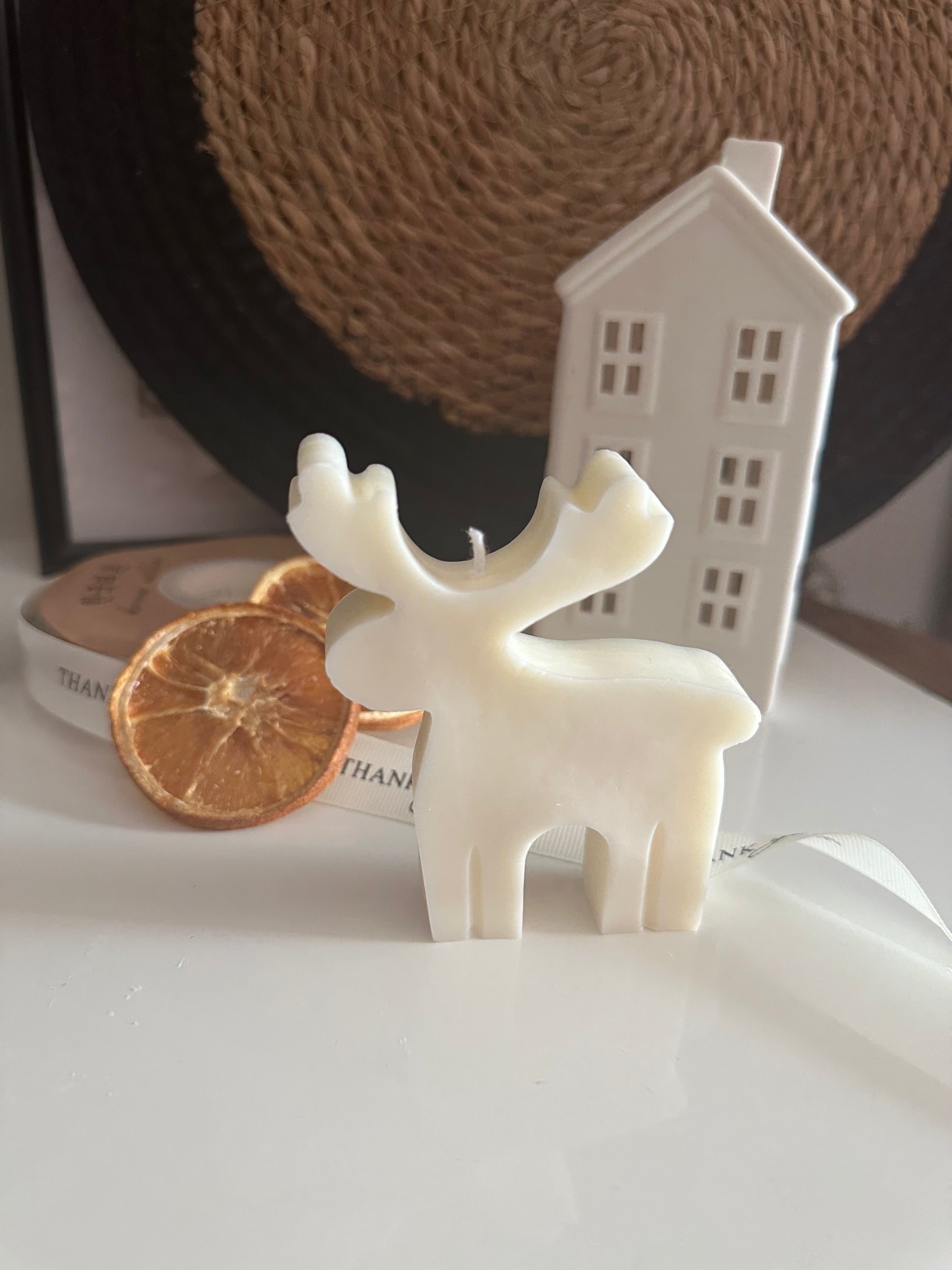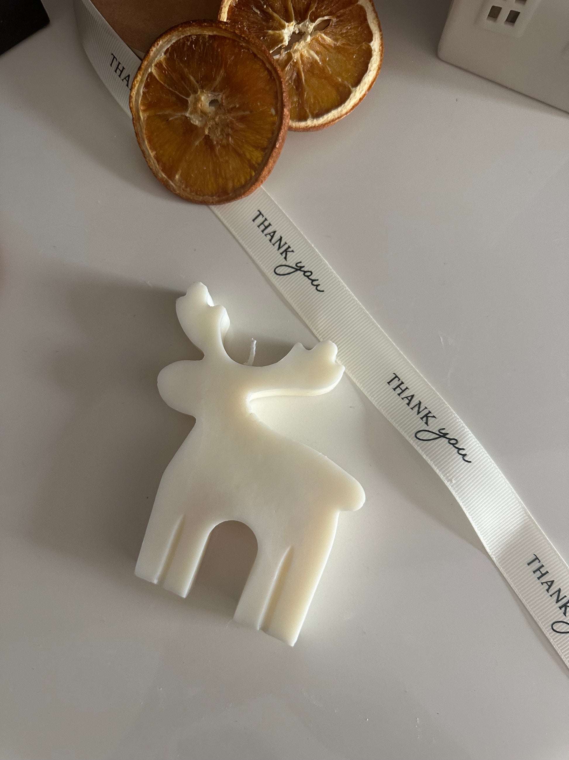 Candela super natalizia a forma di renna tutta con 100 % di cera di soia pillar